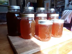 We have a row of old Sugar Maples here that we have been tapping since we arrived on site. Jarod built us a boiler out of an old oil tank and we have produced anywhere from 15-25 litres of liquid gold each season. We cannot expand further in this venture due to the limit of trees so we boil syrup the old fashioned way; we hang buckets, carry full sap pails and boil slowly over a roaring fire. We are reasonably pleased with our results and we are always happy to share the best batch with family and friends.